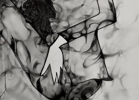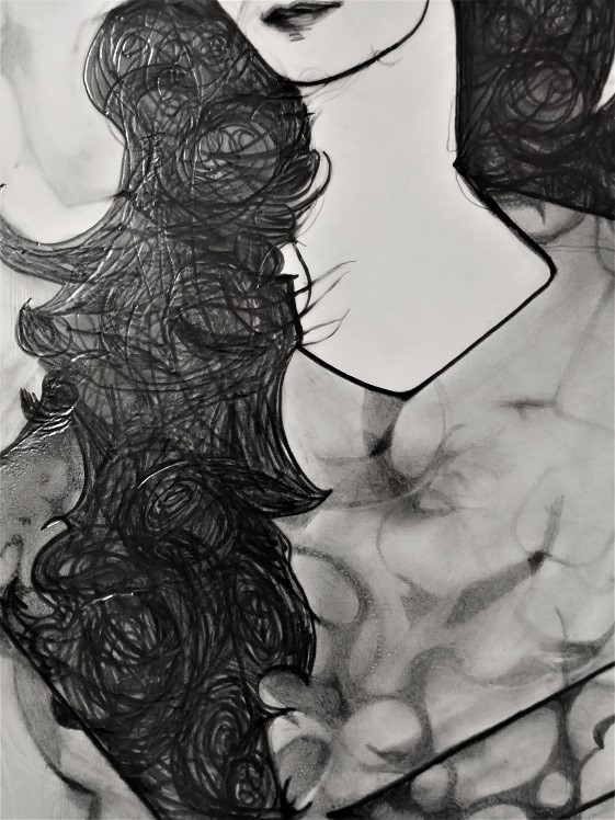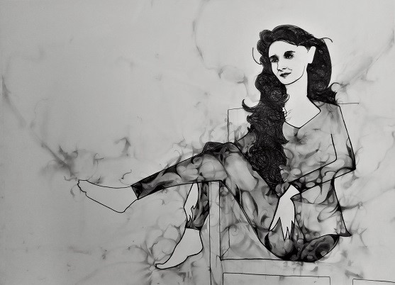 He: deliberately: left Alia's image lightly nondescript: as he said personally - to underlined the essence of femininity: which he grounded into the painting - only the face and lines are tangible: the rest is highly abstract - taken directly from the artist's mind: and placed right in front of you on paper: